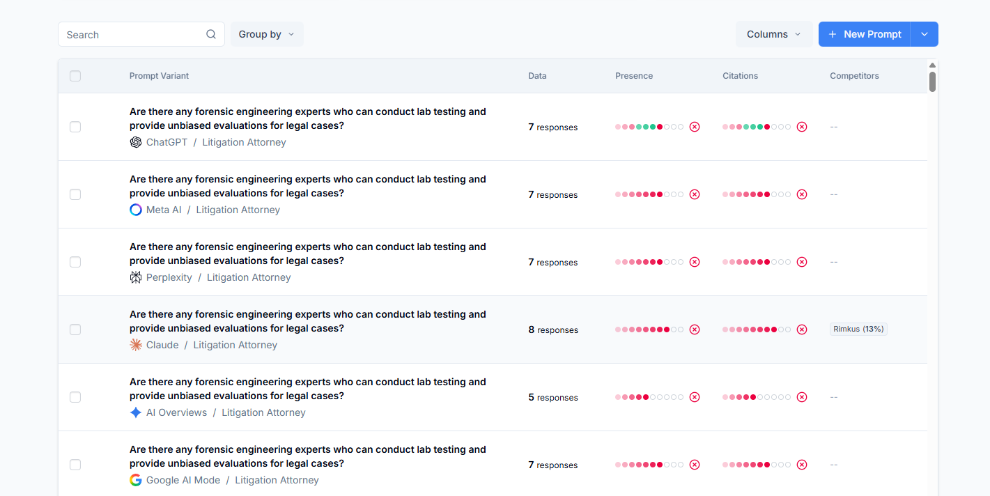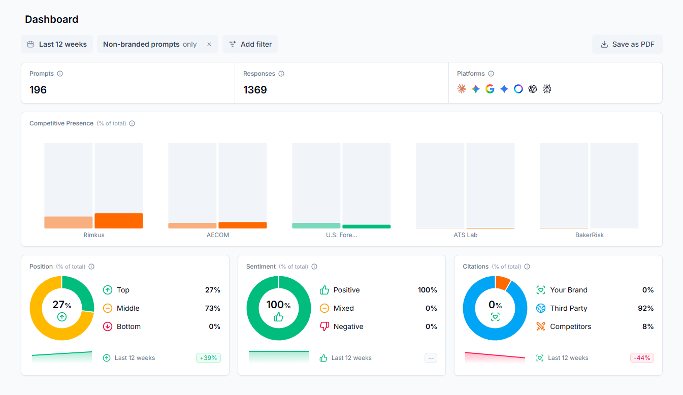 This moves us past guesswork. We can see the hard data and know exactly how often our client gets cited in relevant prompts compared to everyone else in their market.