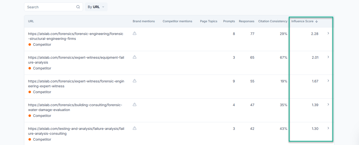 For example, we've discovered competitor site pages that LLMs trust heavily based on Influence Score. Next, we check the backlinks of these pages and secure these specific links. It then creates a domino effect, as visibility goes up across the board.