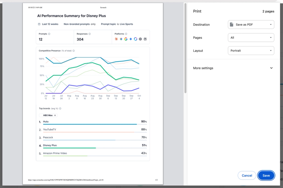 Now, when your CEO or board asks about AI search performance, you can quickly share a clear, visual report--no extra explanation required.