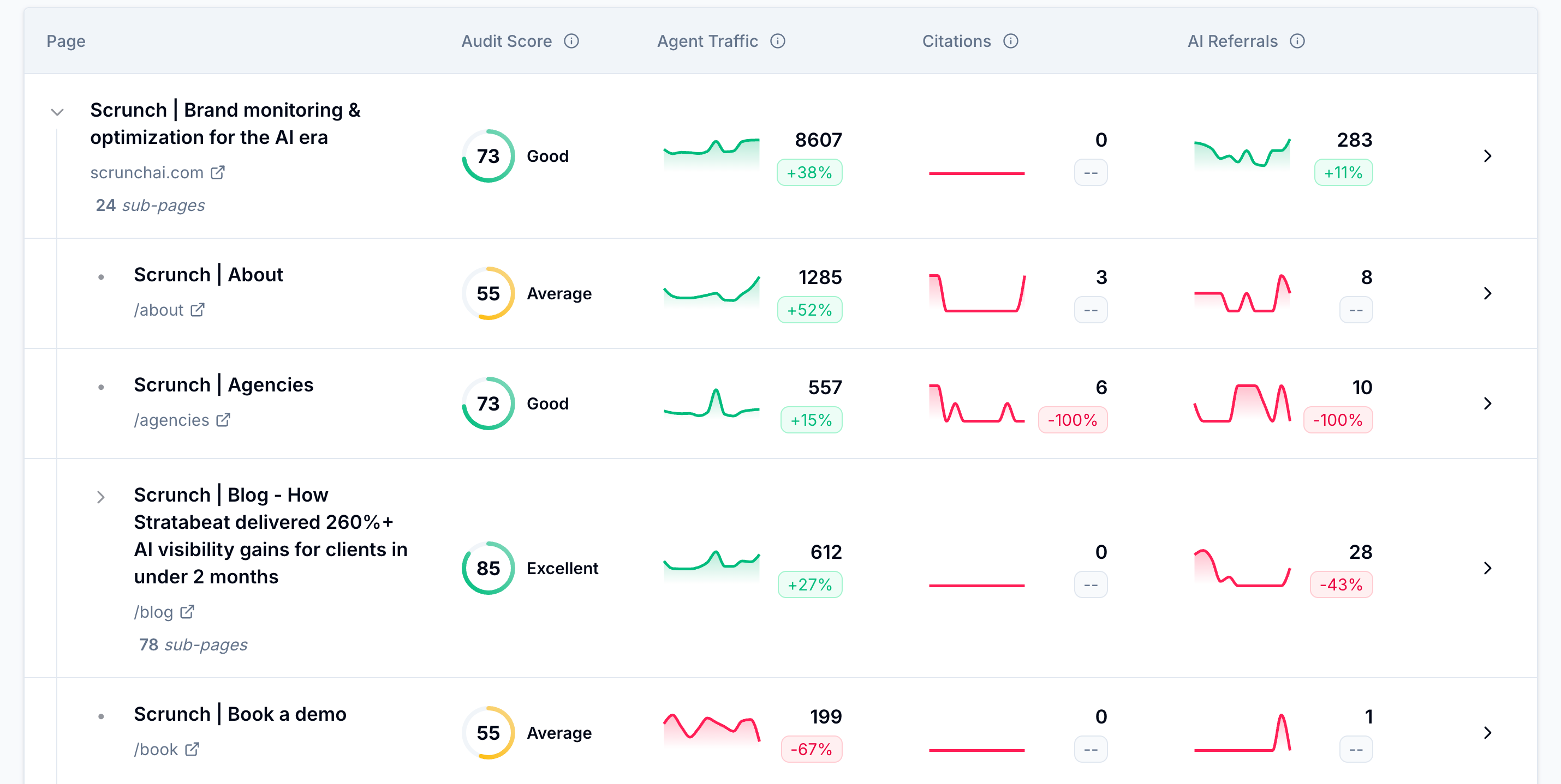 Now it’s time to monitor how your AI search performance improves—by page, by prompt, by citation, by agent, and beyond.